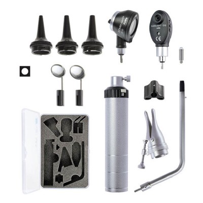 Отоскоп, входящий в состав набора, оборудован всеми необходимыми принадлежностями для проведения качественной диагностики уха. В комплекте поставляются различные ушные воронки, что позволяет адаптировать прибор для осмотра как взрослых, так и детей. Высокая яркость и четкость освещения обеспечивают отличную видимость даже в самых труднодоступных участках слухового канала.